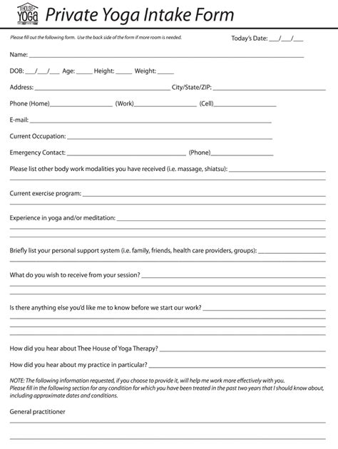 Private Yoga Intake Form. Are you new to yoga? Two to six months seven.