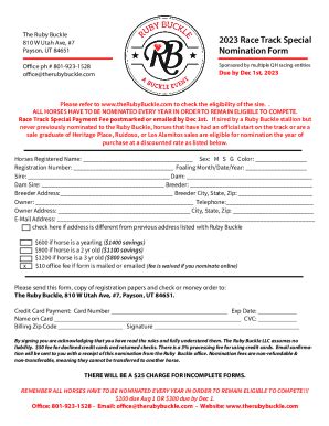 Ruby Buckle Nomination Form. Web download the nomination form to print and mail to our office along with a check or credit card info and a copy of registration papers. Web horses are eligible for nomination if they are sired by ruby buckle stallions.